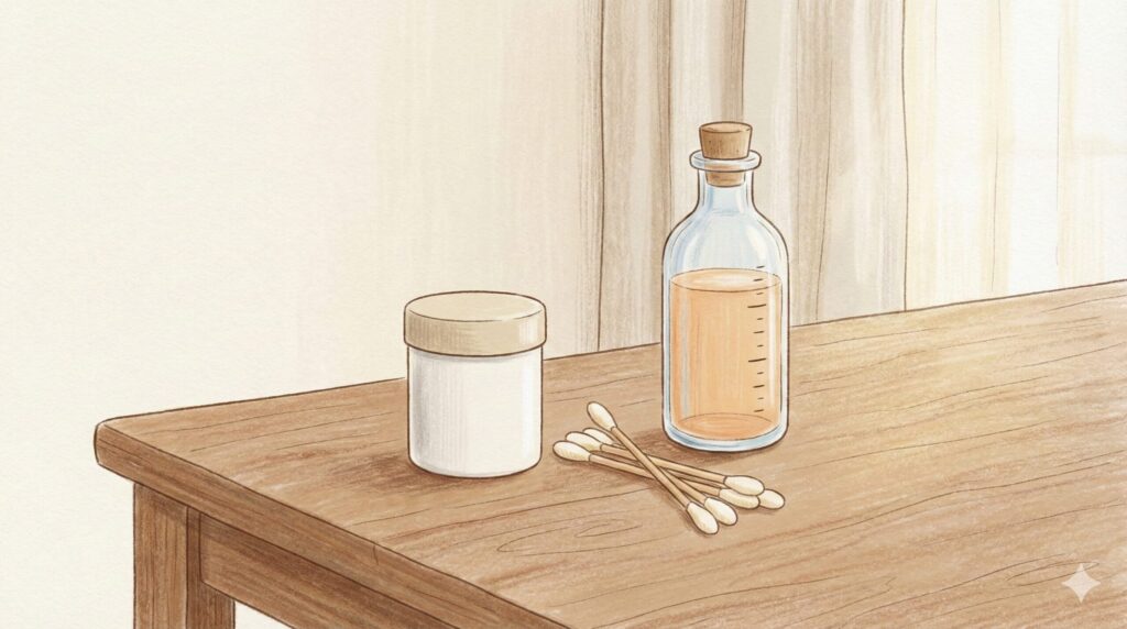 - 優しくむく: お子さんが痛がらない範囲で、優しく包皮を根元の方へ下げます。無理に全部むく必要は全くありません。少しでもむければ十分です。