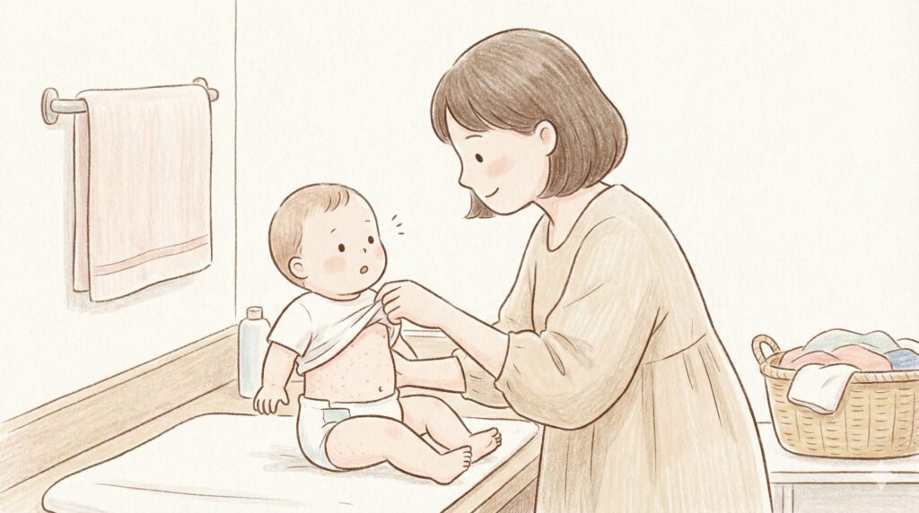 この不機嫌は、発疹が消えるとともに必ず落ち着きます。「今はそういう病気の時期」と割り切り、家事は最低限にして、抱っこで安心感を与えてあげてください。
