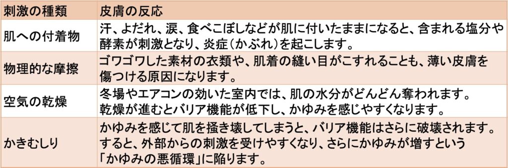 不安定なバリア機能と乾燥が相まって、湿疹が誘発されるのです。