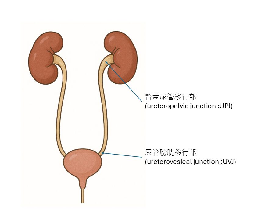 他にも尿管瘤や異所性尿管などの疾患などにより、尿管膀胱移行部に異常が生じ、腎臓や尿管に水がたまることがあります。