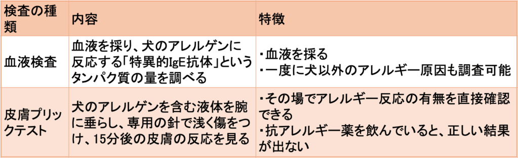 検査方法には、血液検査と皮膚プリックテストの2種類があります。