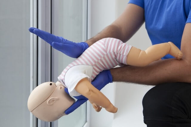 背部叩打法は、1歳未満の乳児が対象の基本的な応急処置です。次のケースに当てはまるときに、直ちに実施します。