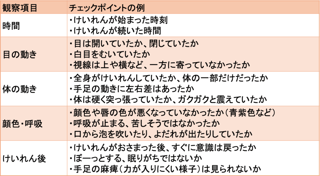 ③けいれん中の様子を医師に詳しく伝える