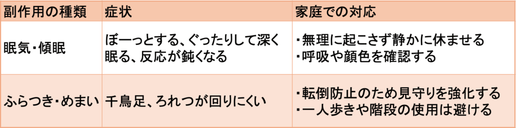 薬の副作用に対する家庭での対応を以下にまとめました。