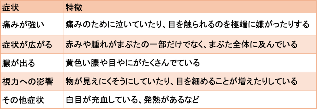 症状は時間とともに変化していくため初期の段階で対処することが大切です。お子さんのまぶたの状態を注意深く観察することで、ものもらいのサインに早く気づくことができます。