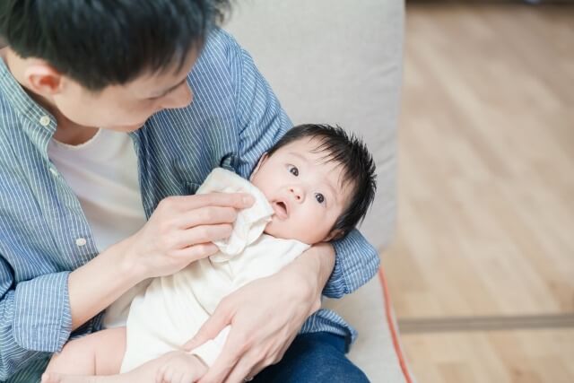 授乳や食事の後、起きた後、よだれの量が多いときなどのタイミングを目安に、口の周りを清潔にしてあげましょう。