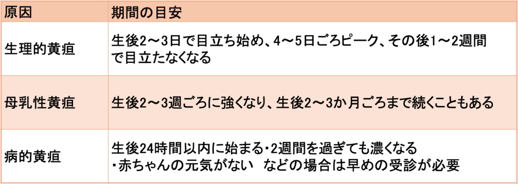 「赤ちゃんの黄疸はどのくらい続くのだろうか」と不安に思いますよね。個人差はありますが、一般的な目安は次のとおりです。