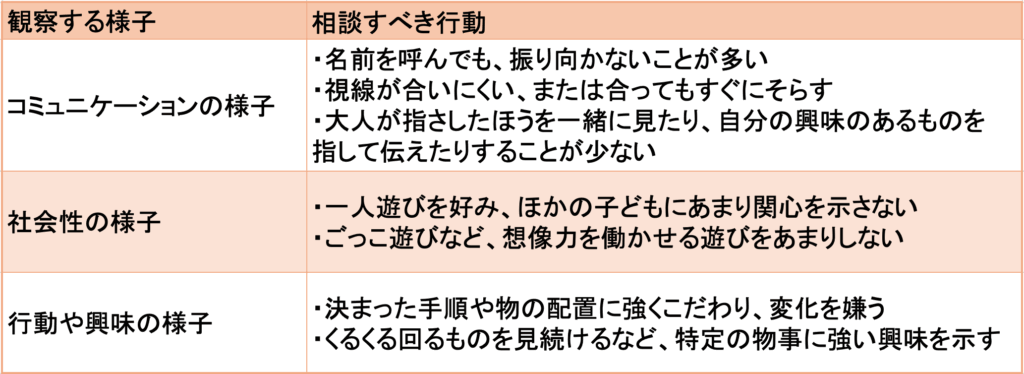 ただし、これらのサインはあくまで目安です。当てはまるからといって、必ずしも自閉症というわけではありません。