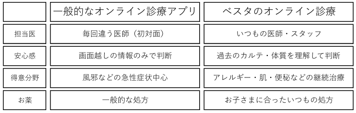 そんな保護者様の声にお応えして、ベスタではかかりつけの患者様限定のオンライン診療をスタートします。