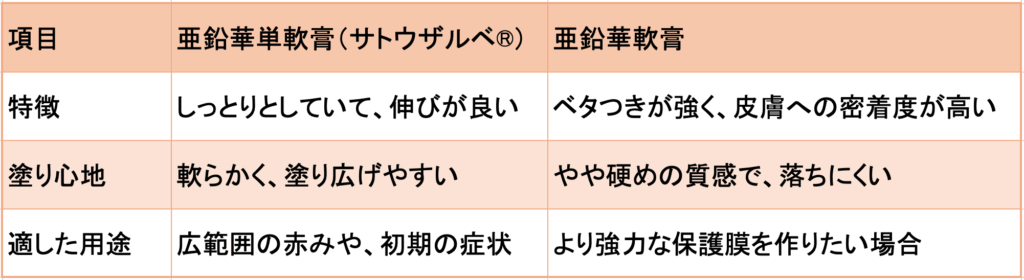 亜鉛華単軟膏と亜鉛華軟膏の違い