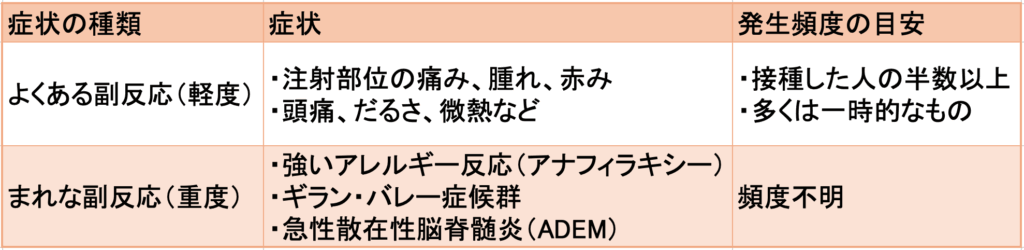 副反応の症状と発生頻度