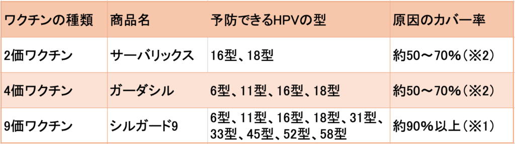 HPVワクチンの種類(2価・4価・9価)と違い