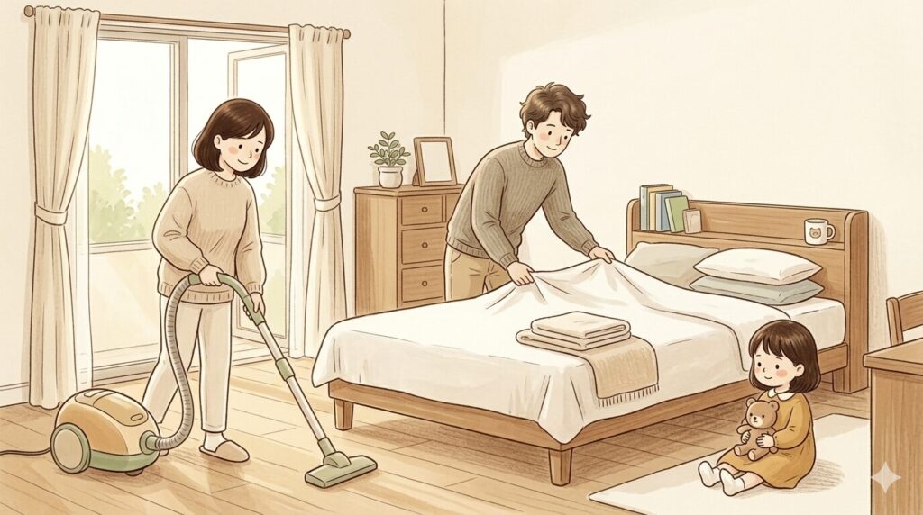 こまめな換気や掃除機がけでダニやホコリを減らすことや、タバコの煙を避けることは気管支への刺激を減らすためにとても有効です。